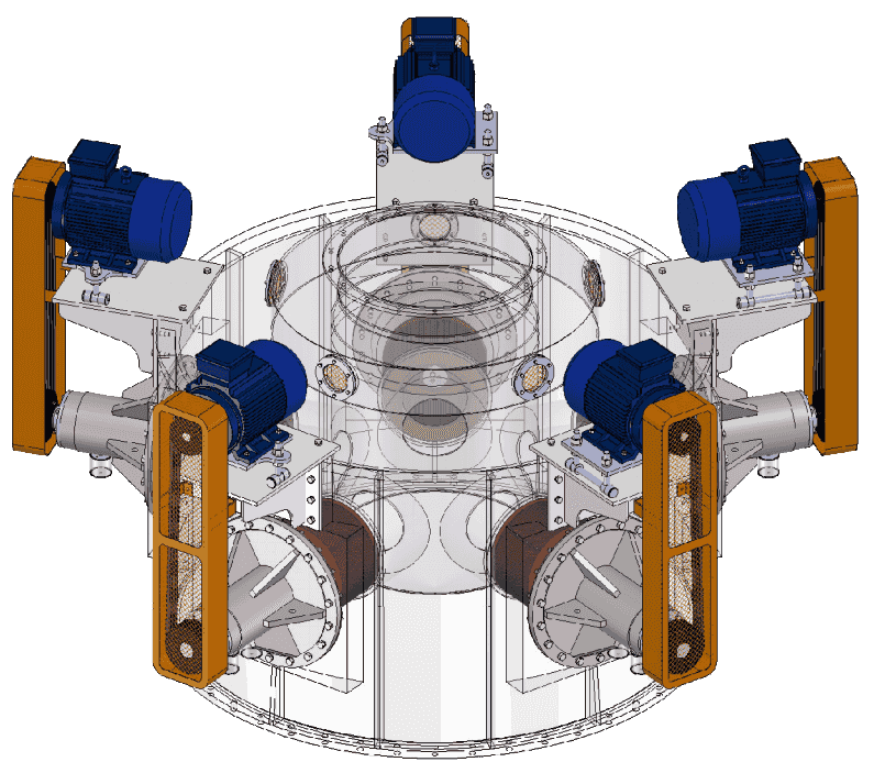 碾盘装置:物料的碾磨区域,连接减速机,自身转动。