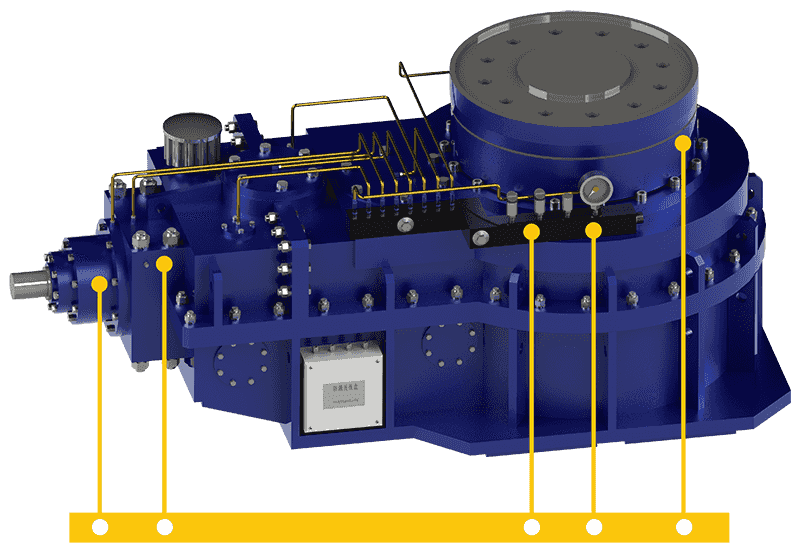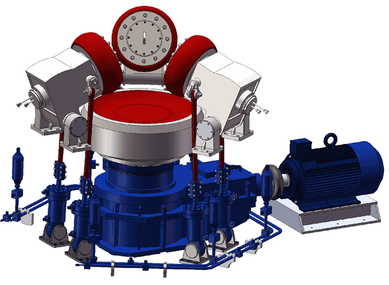 采用PLC/DCS自动控制的磨辊加压控制方式,研磨压力精准,无需人工操作。磨辊套和碾盘衬板的接触采用电子限位和机械限位保护,避免剧烈振动和破坏冲击。减速箱箱体及润滑系统采用了多重检测和保护装置,磨辊润滑采用独立润滑站,单个磨辊润滑回路采用双泵,既保证磨辊轴承的充分润滑和冷却,又使磨辊轴承室不会因存油过多而导致漏油。配备多重智能保护装置的CLUM主机可实现不停机连续运行,并且运行过程高效、安全、稳定。