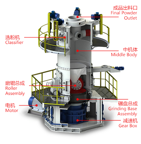 多乐游戏苹果手机版CLUM系列超细立式磨粉机主要由电动机、减速机、磨轮装置、碾盘装置、加压 装置、选粉机、进料装置、油站、主机电控系统等部分组成。