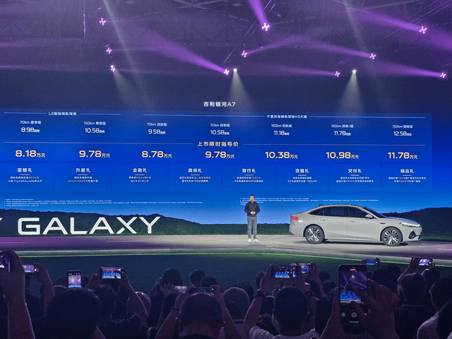吉利银河A7是一款典型插混轿车,级别介于银河L6和星耀8之间,定位10万级插混家轿,竞争对手主要瞄准比亚迪秦L等车型。新车推出7款配置,官方指导价区间为8.98-12.58万元之间。限时指导价8.18万-11.78万元。